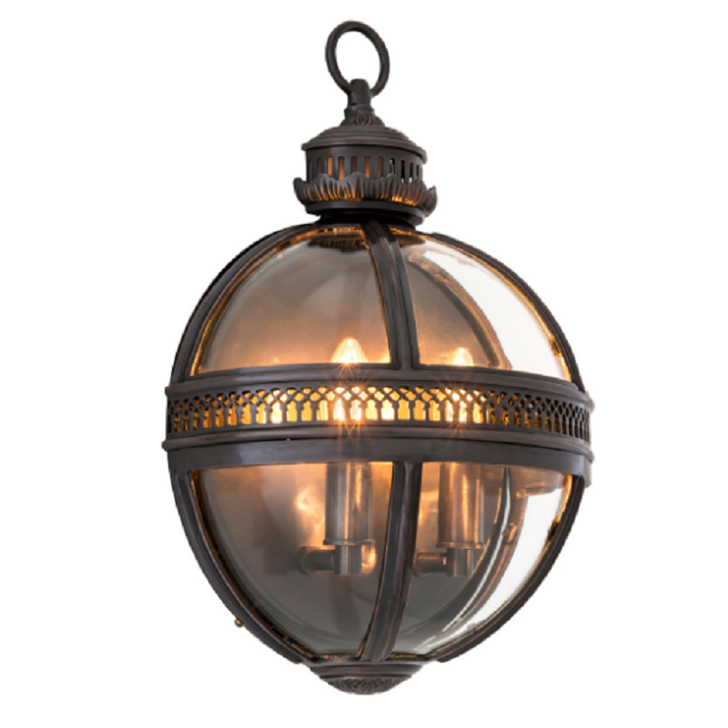 Светильник выполнен из бронзы и сткла в виде половины сферы со свечей в середине.