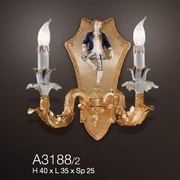 Бра F.B.A.I. A3188/2 destra, итальянского производителя F.B.A.I. Коллекция светильников произведена из высококачественных материалов по европейским стандартам качества. Классическая Бра в отделке золотом 24 карата. Декоративные элементы и чашечки из фарфора. Возможно несколько вариантов отделки - золото, бледное золото и бронза. В светильнике этой серии используется патрон E14, а в качестве источника света - лампочка мощностью 40W.
