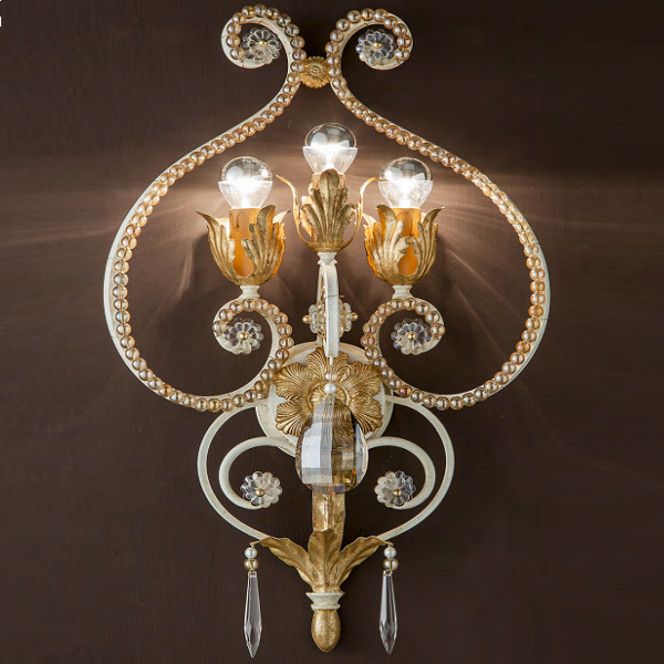 Бра Gallo M461/P/3 в классическом стиле. Закрученные рожки переходят в подставки из листиков, а затем в лампочки-свечки. Основание дополнено закручеными рожками, хрустальными подвесами, флористикой и бусинками. Вы можете купить светильник в нашем интернет-магазине DecoShop по лучшей цене.