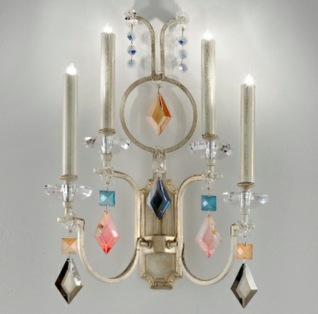 Бра Masiero Lizzi A4 в классическом стиле из Италии. Основание из окрашенного в золотой цвет металла. Подвески из цветного хрусталя.
