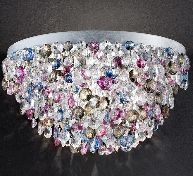 Бра Masiero Rosemery A1-2 в неоклассическом стиле из Италии. Металлическое основание с подвесками из цветного стекла.