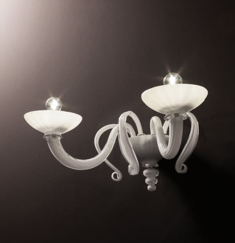FIORE - APPLIQUE 2 LUCI - BIANCO LATTE + TRASPARENTE - STRUTTURA CROMO