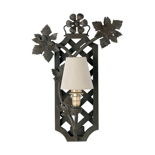 Бра Guadarte H 70204 во флористическом стиле из Испании. Очень оригинальная идея сделать заднюю стенку под плетение (вроде беседки), и дополнить ее вьющимися кованными цветами. Само бра украшено белым тканевым абажуром. Вы можете купить светильник в нашем интернет-магазине DecoShop по лучшей цене.