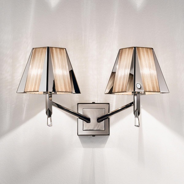 Бра IDL Luce da Vivere Prestige 534/2A в современном стиле из Италии. Металлический корпус доступен в отделках: медь, сталь, чёрный никель, ржавчина. Абажуры из органзы в различных отделках.