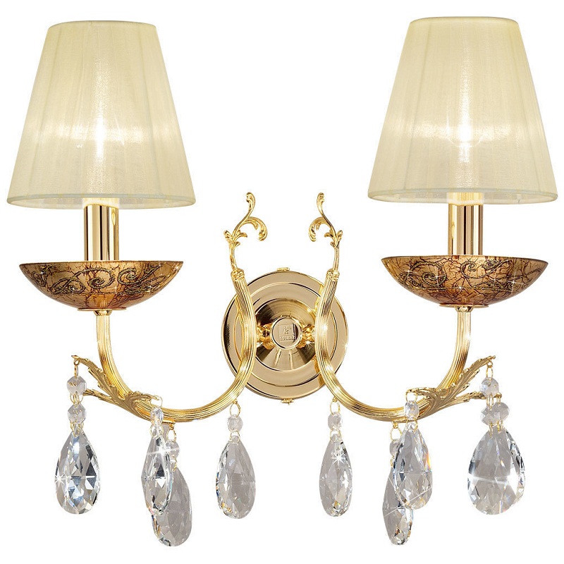 Бра Kolarz 3003.62.3.KoT/me30 в классическом стиле. Ребристые рожки с листочками дополнены блюдцами с лампочками-свечками, накрытыми абажурами, и хрустальными подвесками. Вы можете купить светильник в нашем интернет-магазине DecoShop по лучшей цене.