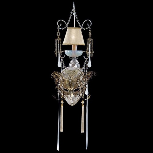 Бра Pataviumart AP2230/01NJ, итальянского производителя Pataviumart. Коллекция светильников произведена из высококачественных материалов по европейским стандартам качества. Центральное место в композиции занимает необыкновенная роскошная венецианская маска тонкой ручной работы. Элегантный шелковый абажур, изысканные подвески из муранского стекла. Возможны различные варианты исполнения арматуры, плафонов и декора по Вашему желанию. Вся продукция фабрики изготавливается исключительно вручную выдающимися итальянскими мастерами.
