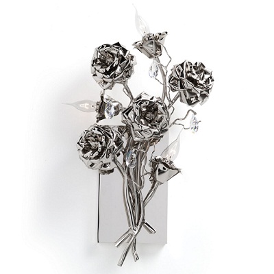 Бра Brand van Egmond VERW35N, серия Vie en rose, нидерландского производителя Brand van Egmond. Коллекция светильников произведена из высококачественных материалов по европейским стандартам качества. Поэзия, застывшая в букетах роз из стали, стала истоком жизни для этой уникальной серии. Каждая модель представляет собой гибкую систему из декоративных деталей, позволяющую составлять разнообразные композиции. Отделка - черный, белый, никель. В светильнике этой серии используется патрон E14, а в качестве источника света - энергосберегающая лампочка мощностью до 18W