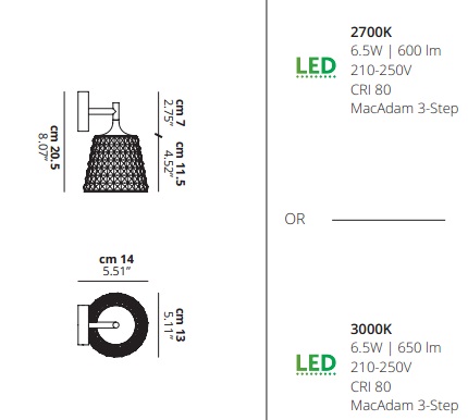 Дополнительные параметры : | 2700K (теплый свет), 600 lm |
