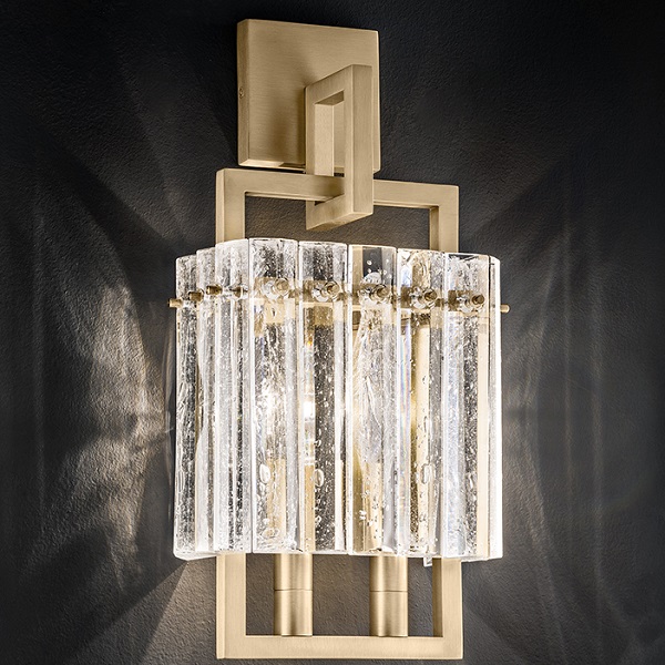 Бра Masiero Crek A2 в современном стиле из Италии. Металлическое основание латунного цвета. Плафон из стекла Crek (имитация горного хрусталя).