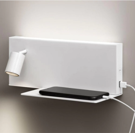 Алюминиевый настенный кронштейн с полкой для установки с левой стороны кровати, окрашенный полиакриловой краской в белый цвет.