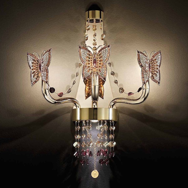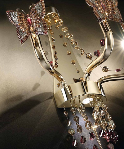 Бра Beby Italy 0190A01, серия Butterfly, итальянского производителя Beby Italy. Коллекция предназначена для восхищенного созерцания тех драгоценных деталей, которые составляют изюминку дизайна - подвески из хрусталя Swarovski, позолоченные мозаичные бабочки, инкрустации сияющими камнями, исполненные с высочайшим мастерством. Элементы Swarovski и декоративные бабочки - золотые, розовые, бордо. В светильнике этой серии используется патрон G9, а в качестве источника света - лампочка мощностью 25W.