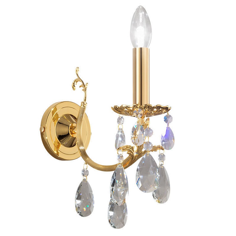 Бра Kolarz 3003.61.3.KoT в классическом стиле. К круглому основанию крепится рожок с золотой подставкой и лампочкой-свечкой. Бра дополнено хрустальными гранеными подвесками. Вы можете купить светильник в нашем интернет-магазине DecoShop по лучшей цене.