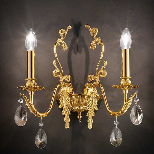 Бра Masiero Acantia A2 N в классическом стиле из Италии. Коллекция светильников произведена из высококачественных материалов по европейским стандартам качества. Арматура - металл, цвет - золото, подвески их хрусталя.