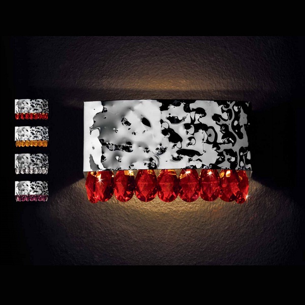 Бра Lamp Illuminazione 450/APP, серия Magma, итальянского производителя Lamp Illuminazione. Коллекция светильников произведена из высококачественных материалов по европейским стандартам качества. Отделка металла - хром или золото 24к. Цвет хрусталя - прозрачный, янтарь, красный или аметист. В светильнике этой серии используется патрон R7s, а в качестве источника света - лампочка мощностью 150W.