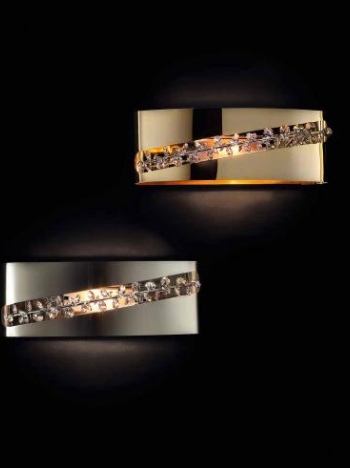 Бра Renzo del Ventisette Contemporaneo A 14338/1 в современном стиле из Италии. Серебряный или золотой лист разделен по косой надвое, а из разреза красиво блестят хрусталики Swarovski. Вы можете купить светильник в нашем интернет-магазине DecoShop по лучшей цене.