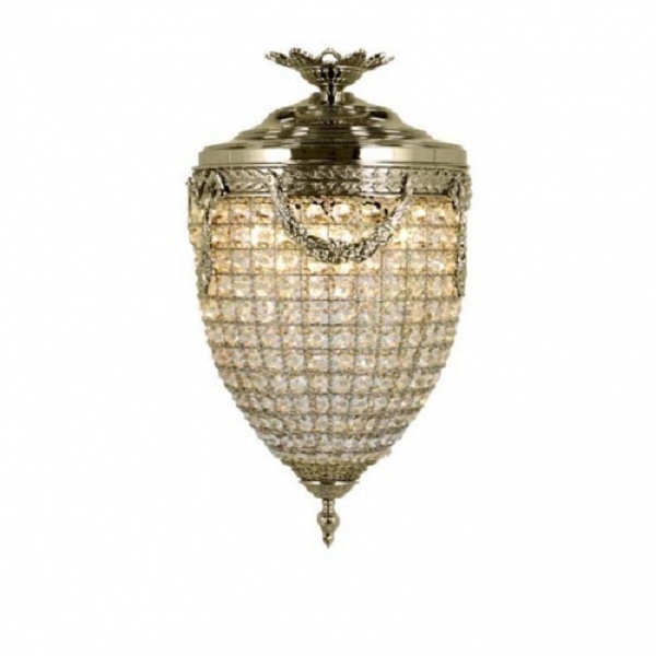 Светильник выполнен из хрусталя и латуни в классичеком стиле.