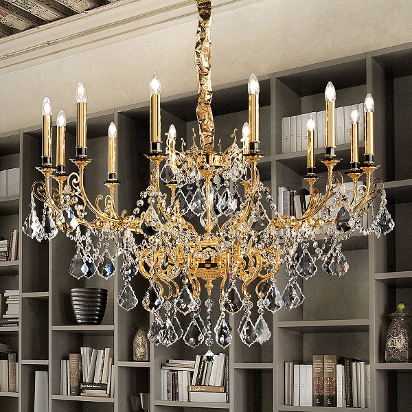 Люстра Masiero Odessa 12 95 в классическом стиле из Италии. Основание из окрашенного металла доступно в 3-х цветах отдеки: античное золото, античное серебро и светлое золото. Прозрачные подвески из хрусталя.
