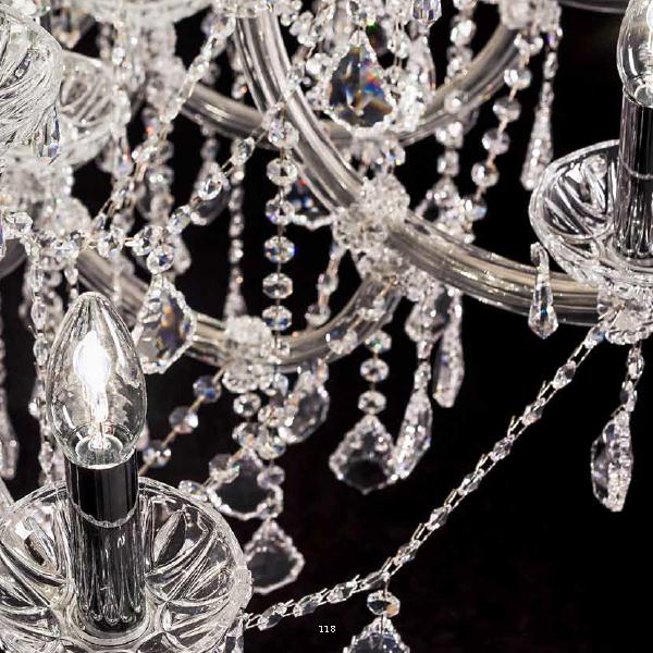 IMPERATRICE - SOSPENSIONE 16+8 LUCI Ø90 - CROMO + PENDAGLI VETRO MOLATO TRASPARENTE
