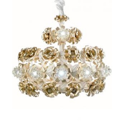 Люстра с артикулом 2639/27LA от итальянской фабрики Eurolampart. Люстра сделана во флористическом стиле: золотые и бежевые цветки облепляют все основание светильника. Вы можете купить люстру-свечи Eurolampart 2639/27LA в нашем интернет-магазине DecoS