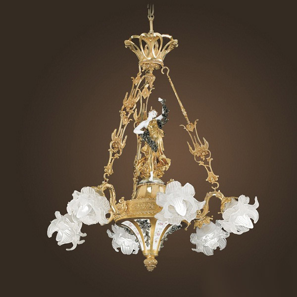Люстра F.B.A.I. 3174/6, итальянского производителя F.B.A.I. Коллекция светильников произведена из высококачественных материалов по европейским стандартам качества. Классическая люстра в отделке золотом 24 карата. Декоративные элементы из фарфора, плафоны - благородное муранское стекло. Ручная работа. Возможно несколько вариантов отделки - золото, бледное золото и бронза. В светильнике этой серии используется патрон E14, а в качестве источника света - лампочка мощностью 40W.