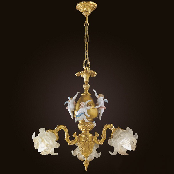 Люстра F.B.A.I. 3179/3, итальянского производителя F.B.A.I. Коллекция светильников произведена из высококачественных материалов по европейским стандартам качества. Классическая люстра в отделке золотом 24 карата. Декоративные элементы из фарфора, плафоны - благородное муранское стекло. Ручная работа. Возможно несколько вариантов отделки - золото, бледное золото и бронза. В светильнике этой серии используется патрон E14, а в качестве источника света - лампочка мощностью 40W.