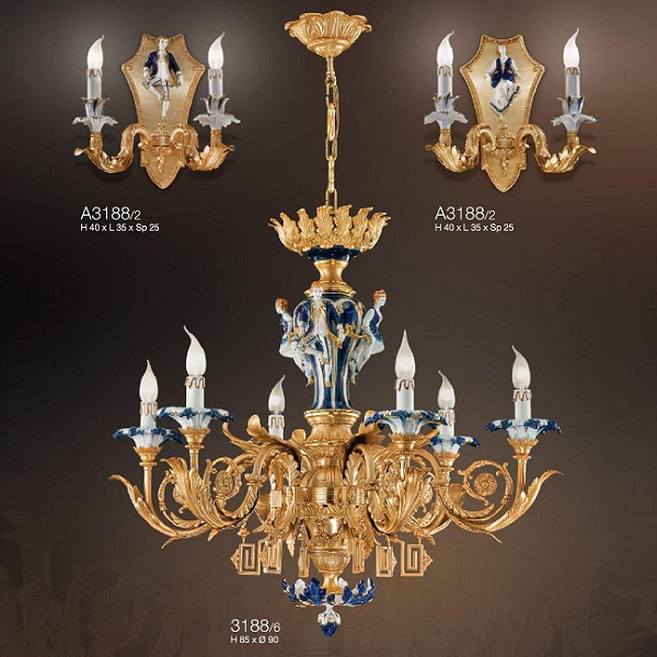 Люстра F.B.A.I. 3188/6, итальянского производителя F.B.A.I. Коллекция светильников произведена из высококачественных материалов по европейским стандартам качества. Классическая люстра в отделке золотом 24 карата. Декоративные элементы и чашечки из фарфора. Возможно несколько вариантов отделки - золото, бледное золото и бронза. В светильнике этой серии используется патрон E14, а в качестве источника света - лампочка мощностью 40W.