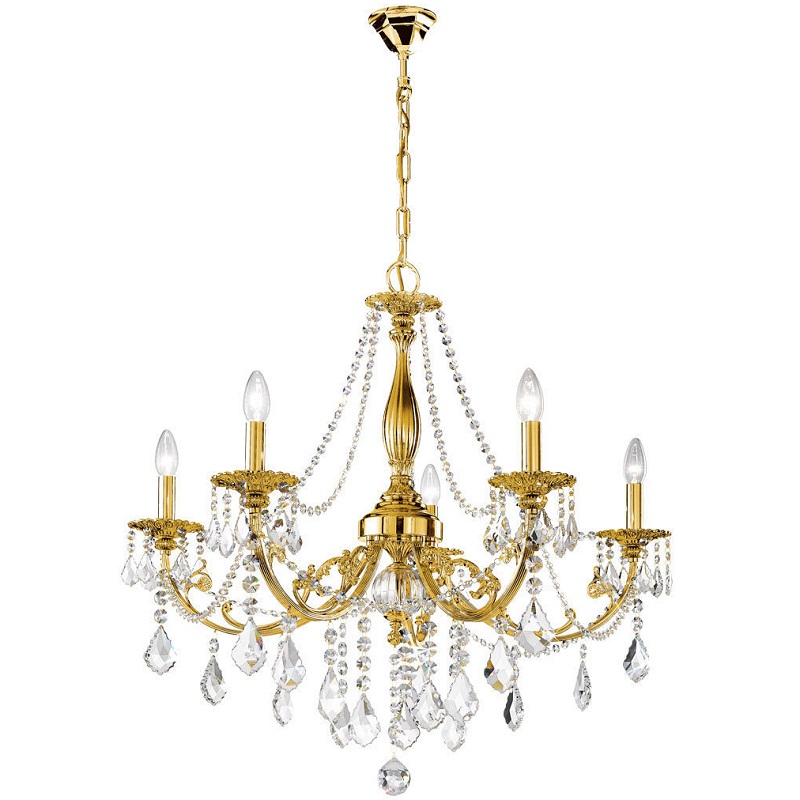Люстра Kolarz 1301.85.15.SpT в классическом стиле. Золотые рожки с декоративными элементами дополнены лампочками-свечками и хрустальными подвесками. Вы можете купить светильник в нашем интернет-магазине DecoShop по лучшей цене.