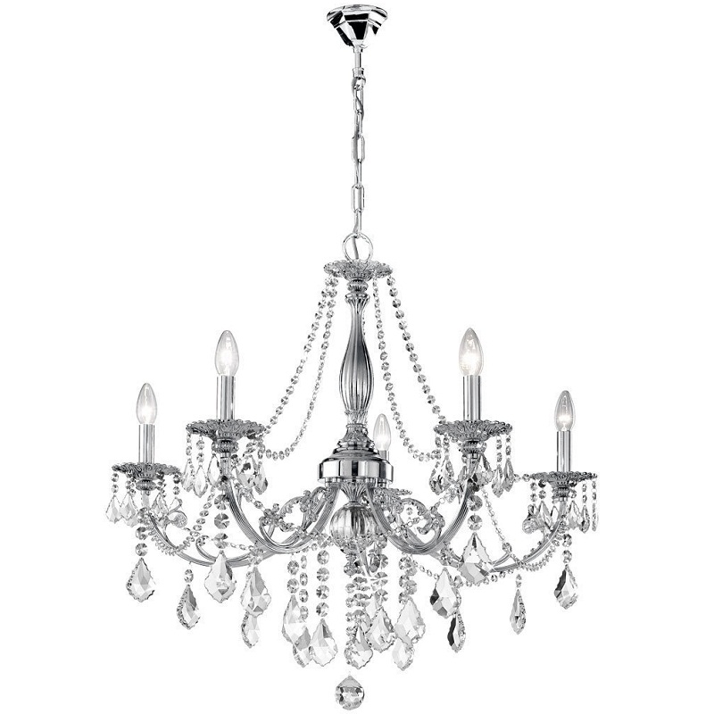 Люстра Kolarz 1301.85.5.SpT в классическом стиле. Нити хрустальных бусинок ниспадают с основания к подставкам с лампочками-свечками, которые крепятся к рожкам, увешенным хрустальными подвесками. Вы можете купить светильник в нашем интернет-магазине DecoShop по лучшей цене.