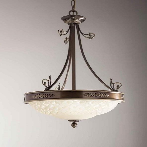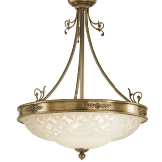 NOVECENTO - LAMPADA IN OTTONE - SOSPENSIONE COLOR BRONZO ARTE 125 +VETRO SCAVO CESTINO H. 75 CM