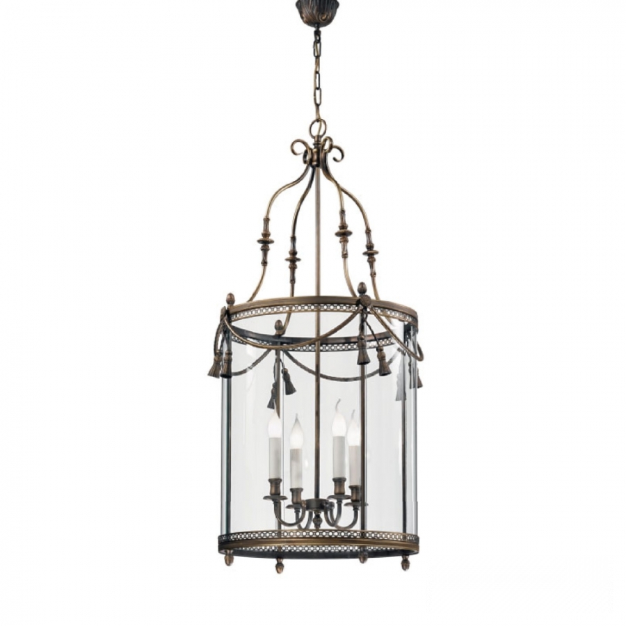 LANTERNA - LAMPADA IN METALLO CON PARTICOLARI IN FUSIONE DI OTTONE - SOSPENSIONE ORO FRANCESE
