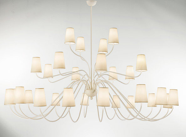 AMANTIDE - LAMPADA IN METALLO - SOSPENSIONE 16+8+4 LUCI Ø210 NICHEL SATINATO + PARALUME BIANCO