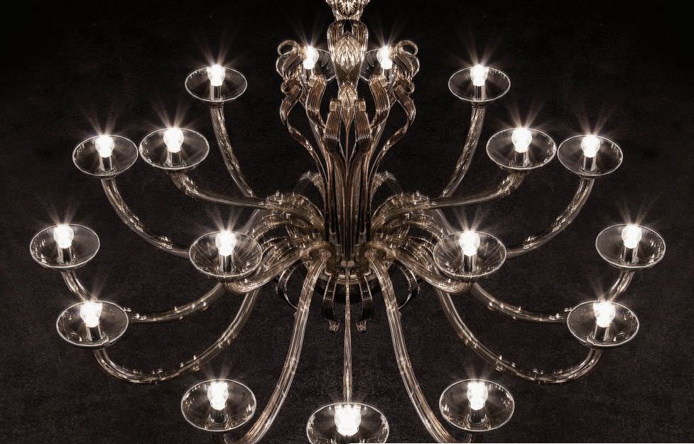 FIORE - SOSPENSIONE 12 +6 LUCI - BIANCO LATTE + TRASPARENTE - STRUTTURA CROMO