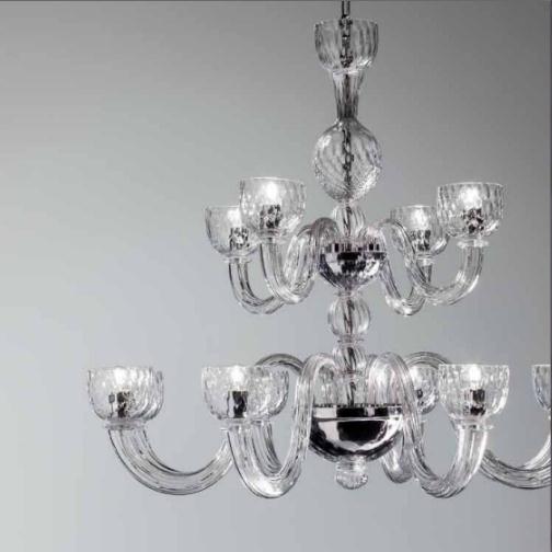 SOFFIO - SOSPENSIONE 12+6 LUCI - VETRO TRASPARENTE - STRUTTURA CROMO