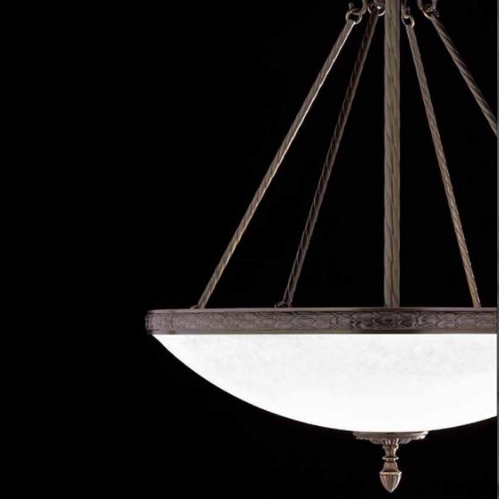 IMPERO - SOSPENSIONE Ø61 - ORO FRANC.111 - VETRO SIMIL ALABASTRO BIANCO LAVORAZIONE ACIDATA