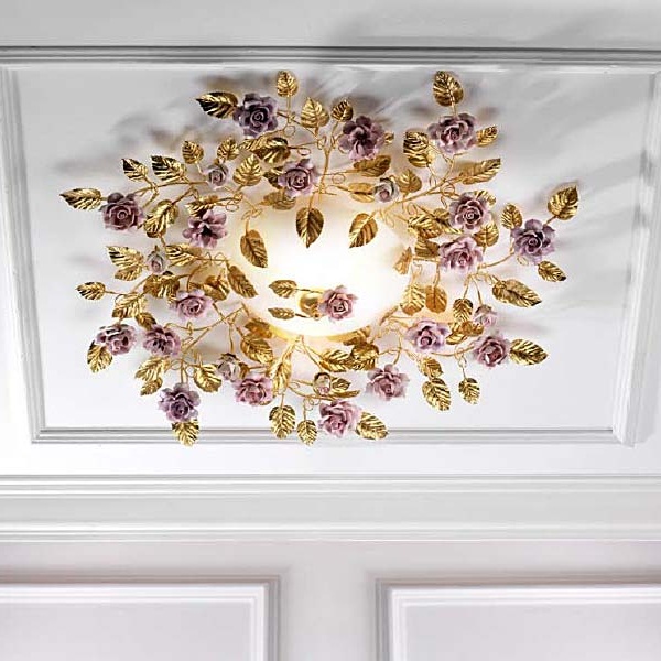 Светильник Villari Pink Roses 40490.2 во флористическом стиле. Полусферический матовый плафон украшен ветками с цветами и золотыми листками. Вы можете купить светильник в нашем интернет-магазине DecoShop по лучшей цене.