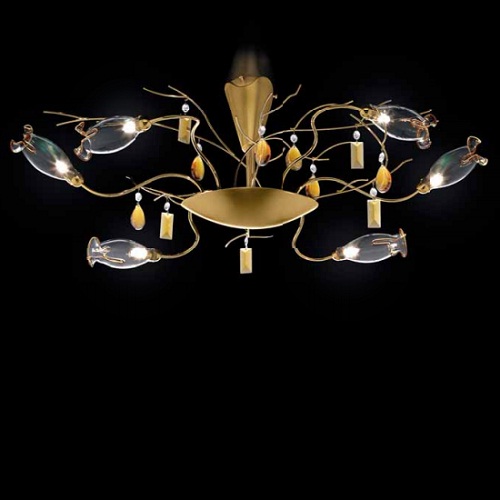 Люстра Lamp Illuminazione 390/PL6, серия Bon Ton, итальянского производителя Lamp Illuminazione. Коллекция светильников произведена из высококачественных материалов по европейским стандартам качества. Современная припотолочная люстра изготовлена из металла и боросиликатного стекла. Отделка арматуры - хром или ржавчина. Цвет стекла - красный, синий, желтый. В светильнике этой серии используется патрон G9, а в качестве источника света - лампочка мощностью 75W.
