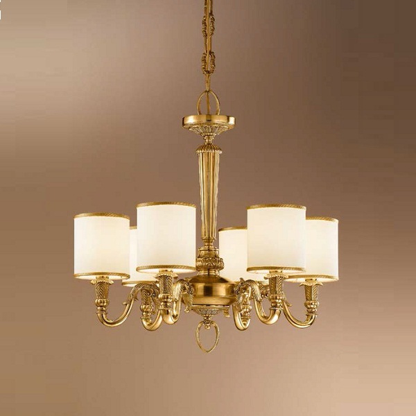 Люстра с артикулом 723/6 от фабрики Arizzi. Светильник сделан в классическом стиле: золотые листики украшеют выгнутые рожки, к которым крепятся лампочки-свечи с абажурами. Вы можете купить светильник в нашем интернет-магазине DecoShop по лучше цене.