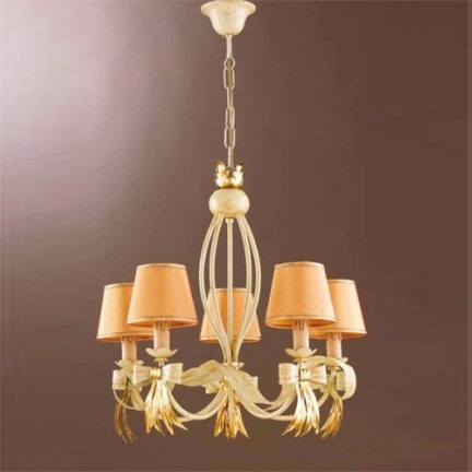 Люстра Epoca Lampadari 1365/5P, итальянского производителя Epoca Lampadari. Коллекция светильников произведена из высококачественных материалов по европейским стандартам качества. Классическая люстра с абажурами из ткани. Цвет абажуров - оранжевый. Арматура - слоновая кость, отделка - золото. Возможен другой цвет металла под заказ. В светильнике этой серии используется патрон E14, а в качестве источника света - лампочка мощностью 40W.