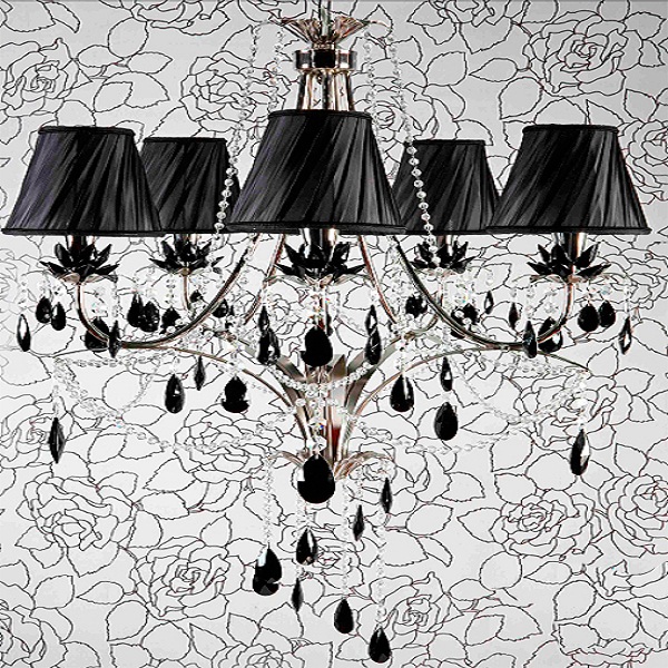 Классическая люстра Jago NCS 04 с пятью черными плиссированными абажурами. Ромбовидная композиция из металлических рожков дополняют хрустальные подвесы и кристаллической формы подставки под лампочки. Вы можете купить светильник в нашем интернет-магазине DecoShop по лучшей цене.