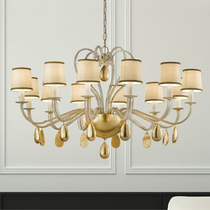 Люстра Masiero Noblesse S12 в классическом стиле из Италии. Основание из металла, окрашенного в золотой или серебряный цвет, украшено стеклянными бусинами. Абажуры из шёлка шантунг.