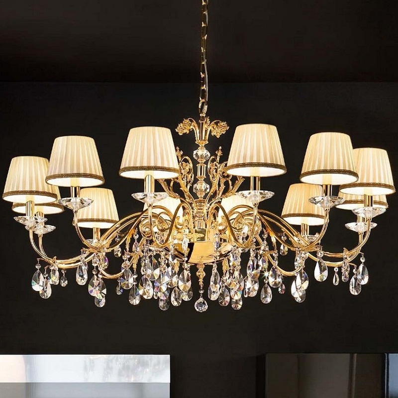 Люстра Masiero Primadonna 12 G01 в классическом стиле из Италии. Основание из окрашенного металла доступно в 2-х отделках: латунь и светлое золото. Абажуры цвета слоновой кости из ткани эпонж добавляют светильнику лёгкий французский шарм.