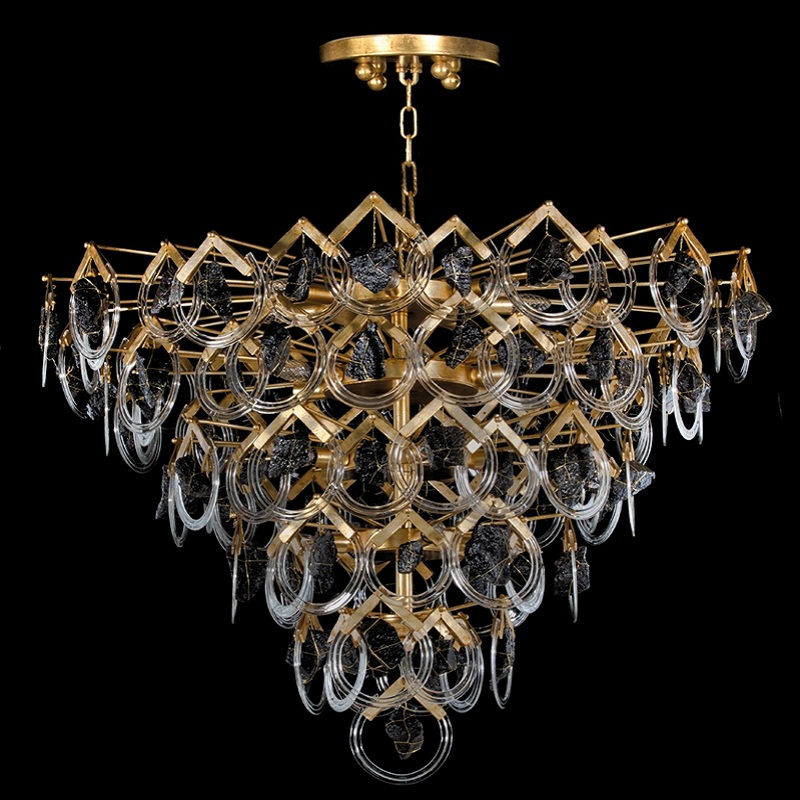 Люстра Due Effe Etna LA/22/DEC.01 в классическом стиле. Конусоподобная конструкция сформирована из похожих на капли, сделанных вручную элементов из металла. Капли декорированы натуральными частичками лавы. Металл покрыт античным листовым золотом. Вы можете купить светильник в нашем интернет-магазине DecoShop по лучшей цене.