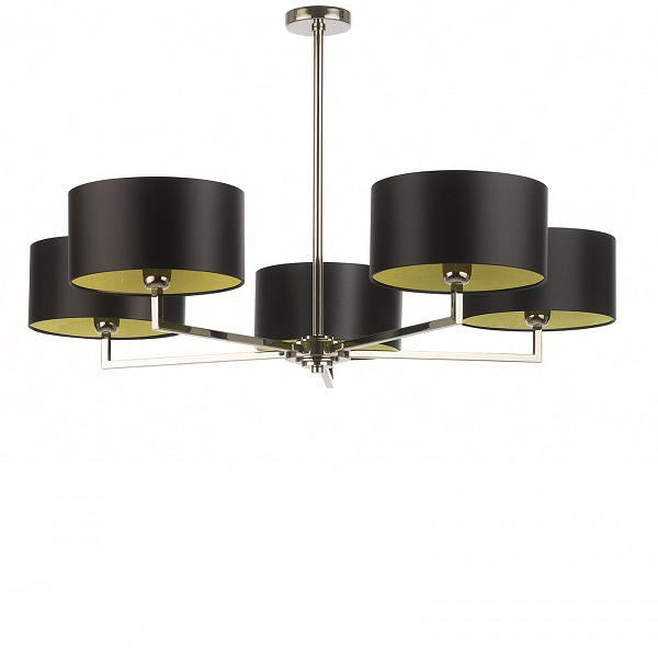 Современная люстра Heathfield Signature Holt Pendant 5 Arm из Великобритании. Красивые и элегантные абажура из чёрного атласа с золотой подкладкой отлично смотрятся в сочетании с основанием латунного цвета. Вы можете купить светильник в нашем интернет-магазине DecoShop по лучшей цене.