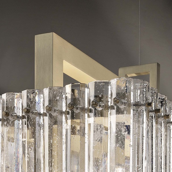 Подвесной светильник Masiero Crek S10 в современном стиле из Италии. Металлическое основание латунного цвета. Плафон из стекла Crek (имитация горного хрусталя).