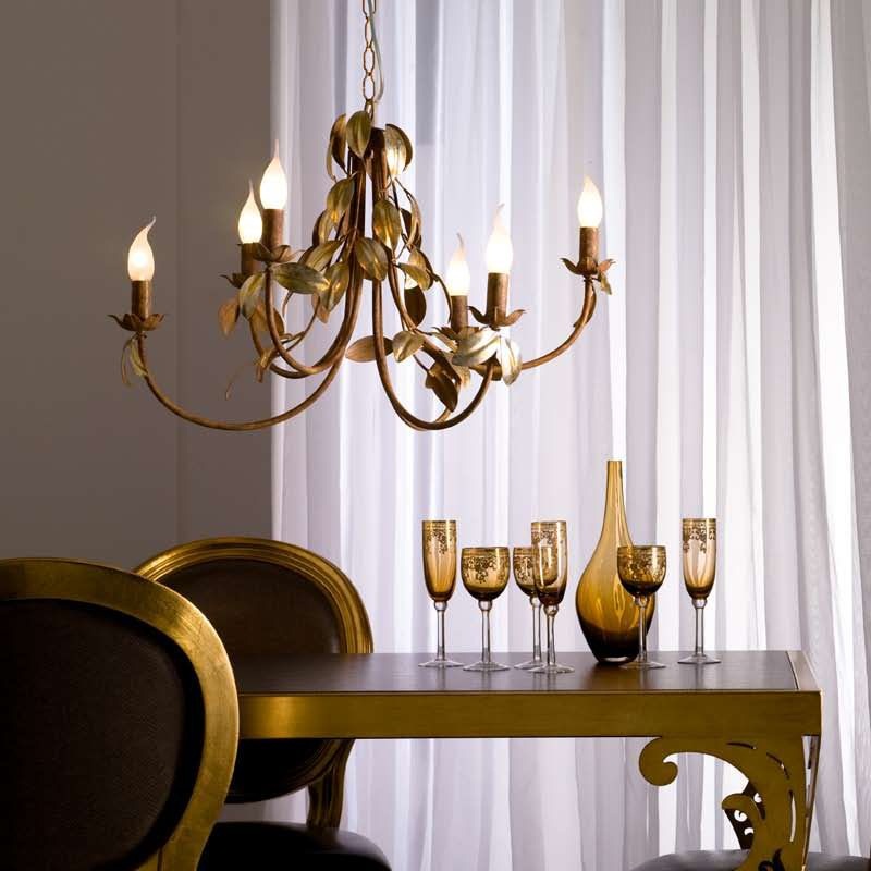 Люстра с артикулом 60/06LA от итальянской фабрики Eurolampart из коллекции FOGLIE. Люстра сделана во флористическом стиле: золотые листики ниспадают с основания и обвивают рожки. Лампочки сделаны в форме свечей, которые придают люстре классический стиль. Вы можете купить люстру-свечи Eurolampart FOGLIE 60/06LA в нашем интернет-магазине DecoShop по лучше цене.