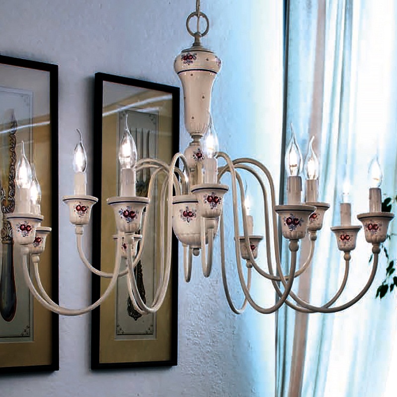Люстра Ferroluce Sanremo C270/12 LA в классическом стиле. Рожки с лампочками-свечками выходят из чаши-основания. Вся конструкция декорирована цветочными узорами. Вы можете купить светильник в нашем интернет-магазине DecoShop по лучшей цене.