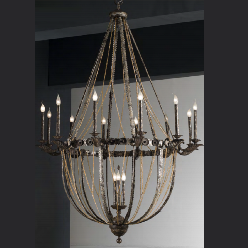 Люстра Gallo M631/CAST в готическом стиле. Обруч-основание дополнен кованными рожками с лампочками-свечками. Люстра состоит из двух ярусов и дополнена золотыми цепочками, которые свисают с самого верха к обручу и от обруча к самому низу. Вы можете купить светильник в нашем интернет-магазине DecoShop по лучшей цене.