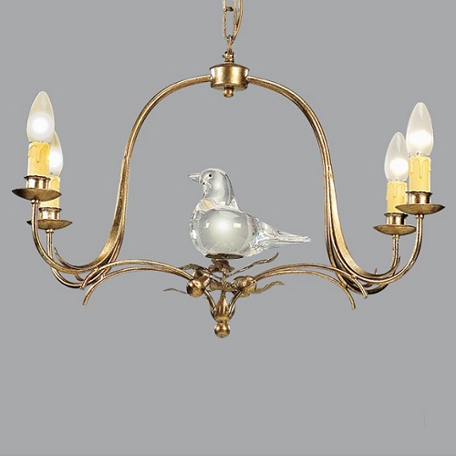 Люстра Lucienne Monique NO 125 в классическом стиле. Выгнутые рожки дополнены лампочками-свечками, листиками и хрустальным голубем, размещенным внутри каркаса. Вы можете купить светильник в нашем интернет-магазине DecoShop по лучшей цене.