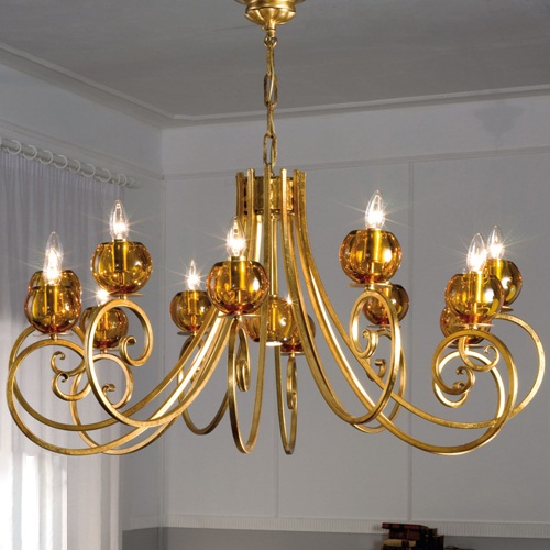 Люстра Sigma L2 7112/12, серия Doroty, итальянского производителя Sigma L2. Коллекция светильников произведена из высококачественных материалов по европейским стандартам качества. Люстра из позолоченного металла ручной ковки. Хрустальный плафон янтарного цвета. В светильнике этой серии используется патрон E14, а в качестве источника света - лампочка мощностью 40W.