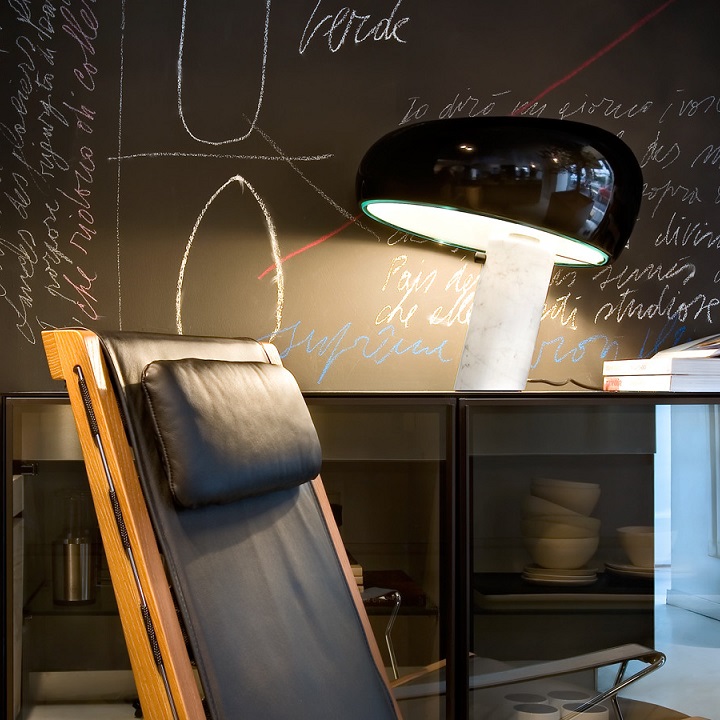 Настольная лампа Flos Snoopy F6380030 в современном стиле из Италии. Настольная лампа, дающая прямой свет с эмалевым металлическим отражателем и белым мраморным основанием. Она была спроектирована Achille e Pier Giacomo Castiglioni в 1967 году.